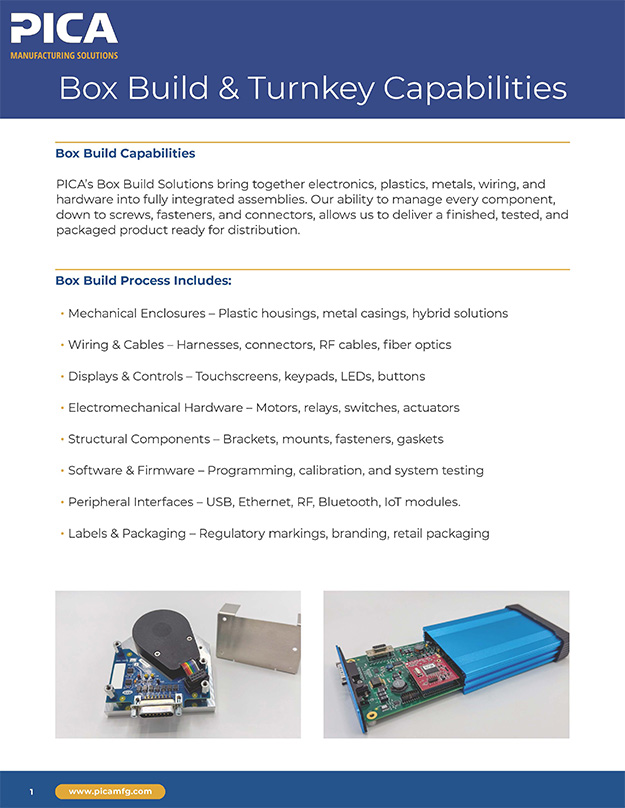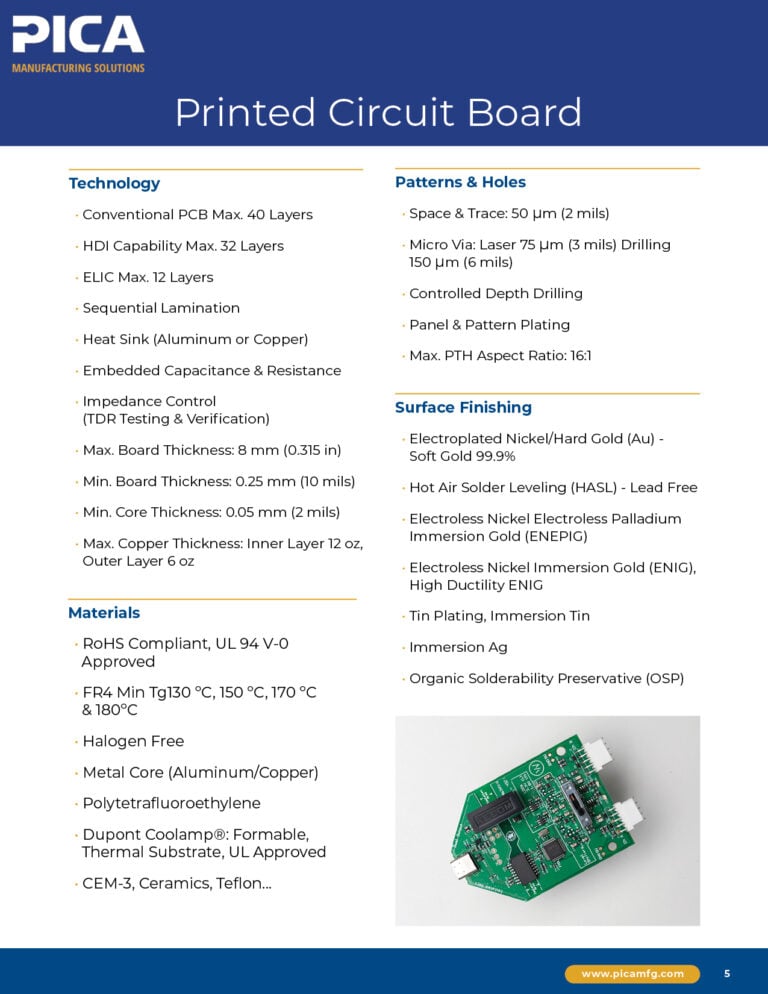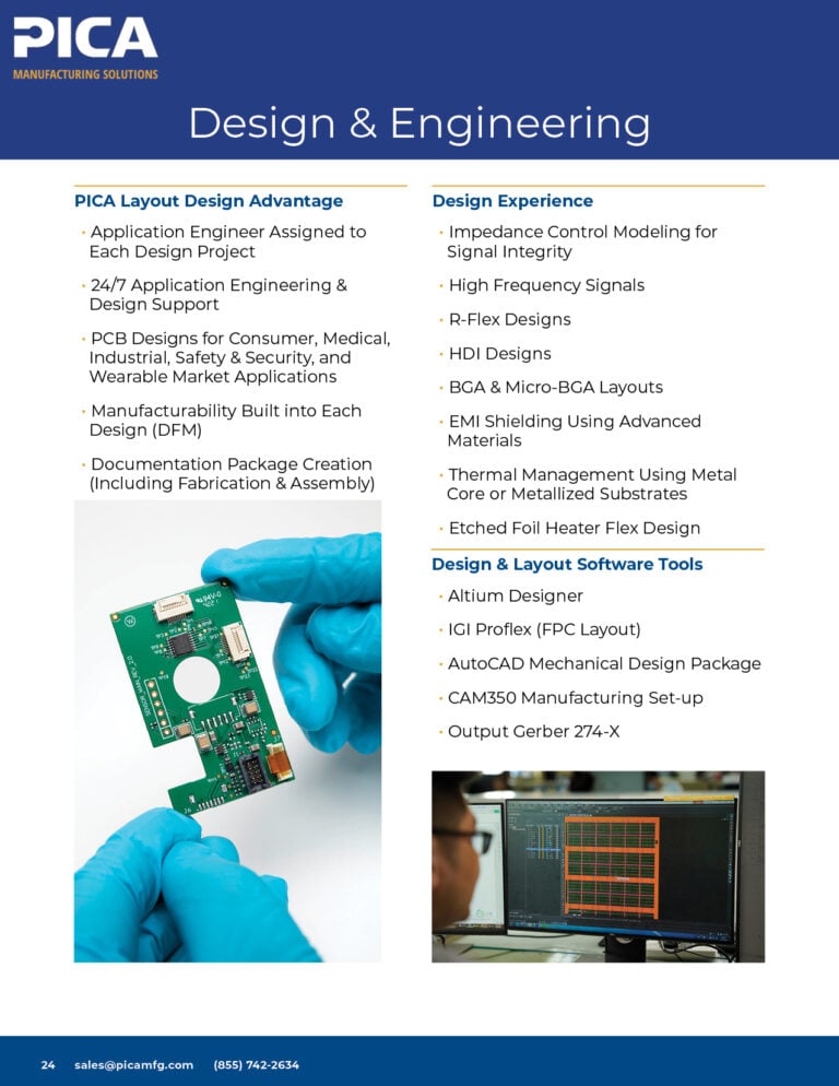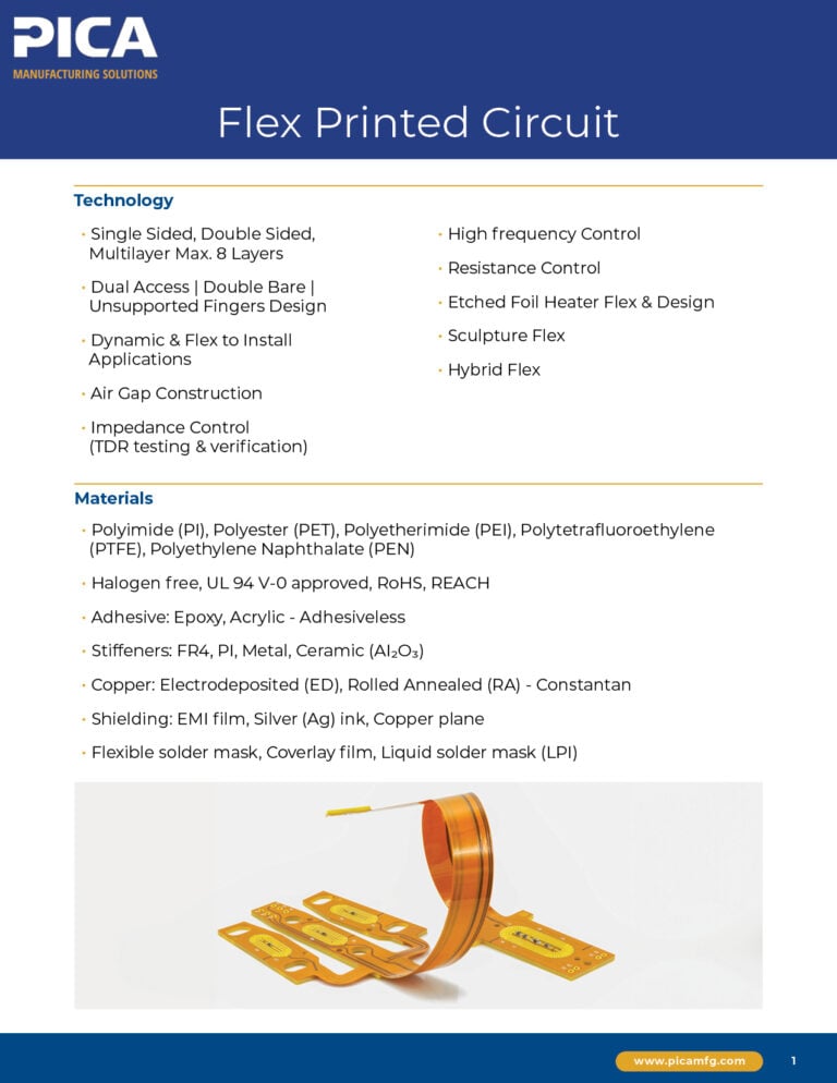 Explore our downloadable capabilities sheets to discover detailed insights into our design, engineering, and manufacturing services. Whether you need information on material options, dynamic flex designs, or precision assembly, we have the resources to help you achieve your goals with confidence. Let PICA be your trusted partner in building the future of electronics.