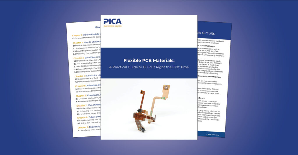 Flexible PCB Materials: A Practical Guide to Build It Right the First Time is a detailed eBook that explores how material selection impacts the performance, reliability, and manufacturability of flexible circuits. It covers the full material decision process, from defining mechanical, electrical, thermal, environmental, and compliance requirements to selecting substrates, conductors, adhesives, coverlays, and auxiliary materials that support long-term performance. The eBook also examines key material options such as polyimide, PET, LCP, PTFE, PEN, PEI, and PEEK, along with important topics like bend reliability, thermal management, moisture resistance, EMI shielding, and roll-to-roll processing. Authored by PICA Manufacturing Solutions, this guide gives engineers and designers practical insight into choosing flex PCB materials that reduce risk, improve durability, and support successful builds across demanding applications.